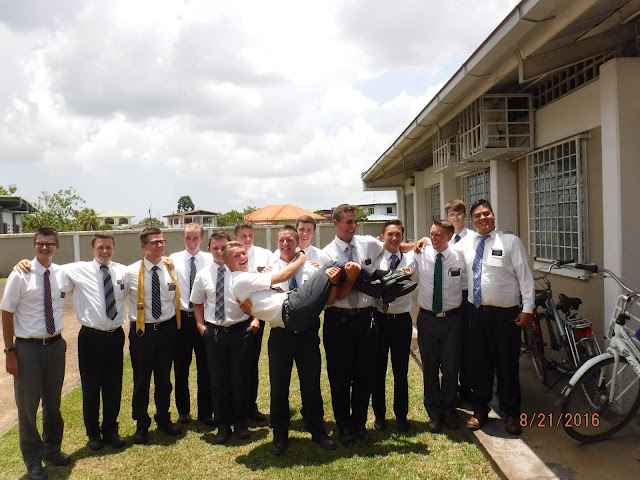 I also thought this one guy was going to punch me this week. We're sitting in a lesson and I am on exchange in another area and we sat with this guy who was basically begging to be baptized but he has been investigating for about 8 months and refuses to get married and is not living any of the commandments. He's a great guy and everything but just isn't getting it. I basically told him when his heart is broken and his spirit is contrite he can get baptized and it's his choice if he wants to do that. Boy, I thought I was going to get cussed out of the house. But I for sure said it with love and was not expecting such a response.. I know Christ would have said the same thing if he was there. Anyways that's the funny story for the week. Also SOS Suriname food is making me squishy. I've started exercising a little more. It's alright though just more to love right. lol Okay have a good week every one!